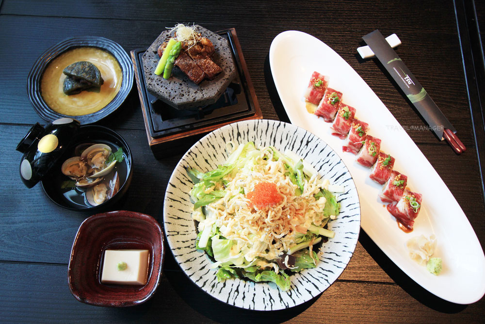 สำรับญี่ปุ่นมาตรฐานส่วนมาก จะใช้เทคนิคการจัดที่เรียกว่า อิจิจูซันไซ (一汁三菜 ichijū-sansai) หรือซุปหนึ่งอย่างกับข้าวสามอย่าง กับข้าวนำมาจัดสำรับจะปรุงด้วยหลากหลายวิธี ทั้งแบบดิบ (ซาชิมิ) การย่าง การตุ๋นหรือการต้ม การนึ่ง การทอด การดอง หรือการยำ (สลัด) มุมมองของคนญี่ปุ่นต่ออาหารนั้นสะท้อนในการจัดบทในตำราอาหารโดยจะจัดแยกตามวิธีการปรุงอาหาร ไม่ได้จัดตามประเภทวัตถุดิบ หรืออาจจัดเป็นแยกเป็นประเภท ซุป ซูชิ ข้าว อาหารเส้น และของหวาน