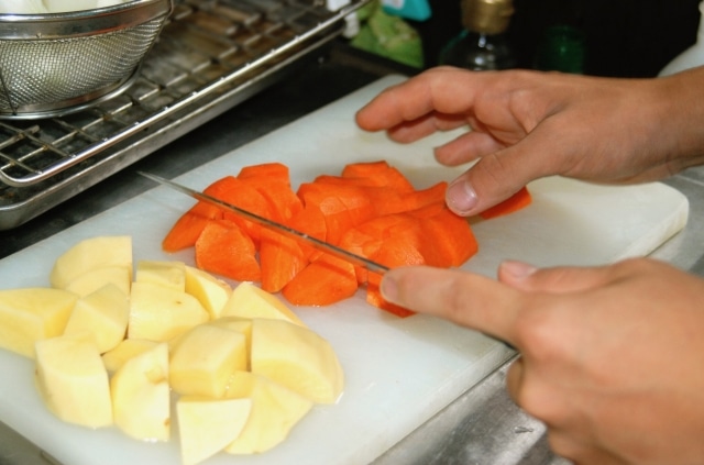 - หอมหัวใหญ่ (ครึ่งหัว) แครอท มันฝรั่ง